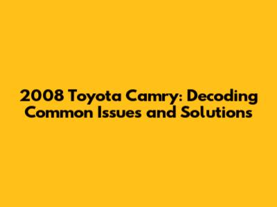 2008 Toyota Camry: Common Problems & Solutions