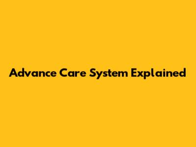 Advance Care System Explained