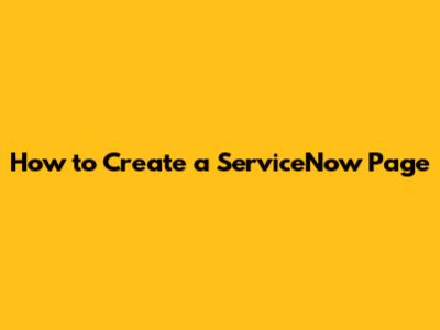 How To Create A ServiceNow Page