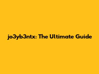 Jo3yb3ntx: The Ultimate Guide