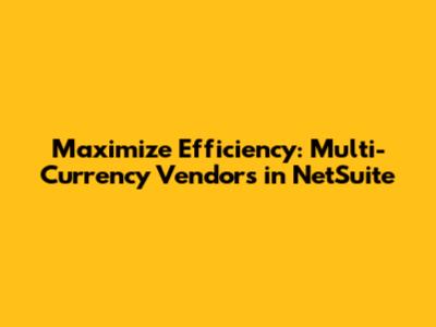 Maximize Efficiency: Multi-Currency Vendors In NetSuite