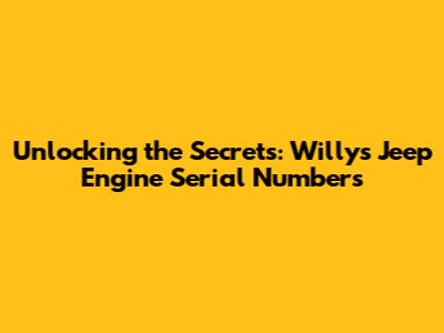 Unlocking The Secrets: Willys Jeep Engine Serial Numbers
