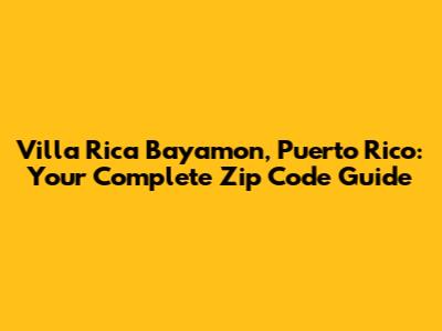 Hey guys! Ever find yourself needing to send a package or maybe just curious about the zip codes in Villa Rica, Bayamon, Puerto Rico? Well, you've come to the right place! We're diving deep into everything you need to know about zip codes in this beautiful area. Whether you're a resident, planning a visit, or just doing some research, understanding the zip code system is super helpful. So, let's get started and unravel the mystery of Villa Rica Bayamon zip codes!